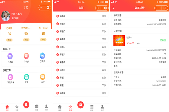 根據購彩者掃碼機器的狀態信息及彩票剩余數量,顯示購彩頁面,購彩者可根據機器設備狀態來進行前端頁面的顯示及控件的操作,進行支付金額的演算。生成訂單信息。消費者完成訂單支付后,設備開始出票。
